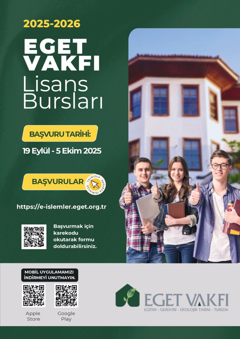 İlk burslarını 2016-2017 yılında vermeye başlayan Vakıf, 2025-2026 öğrenim yılında da öğrencilere destek olmaya devam edecektir. Burs başvuruları, 19 Eylül-5 Ekim 2025 tarihleri arasında çevrimiçi olarak kabul edilecektir. Başvurular tamamlandıktan sonra dijital burs değerlendirme sistemi (BUSED) başvuruları değerlendirilecek; belge inceleme ve mülakatların ardından EGET Eğitim ve Burs Komisyonu, burs almaya hak kazanan adayları belirleyecektir.